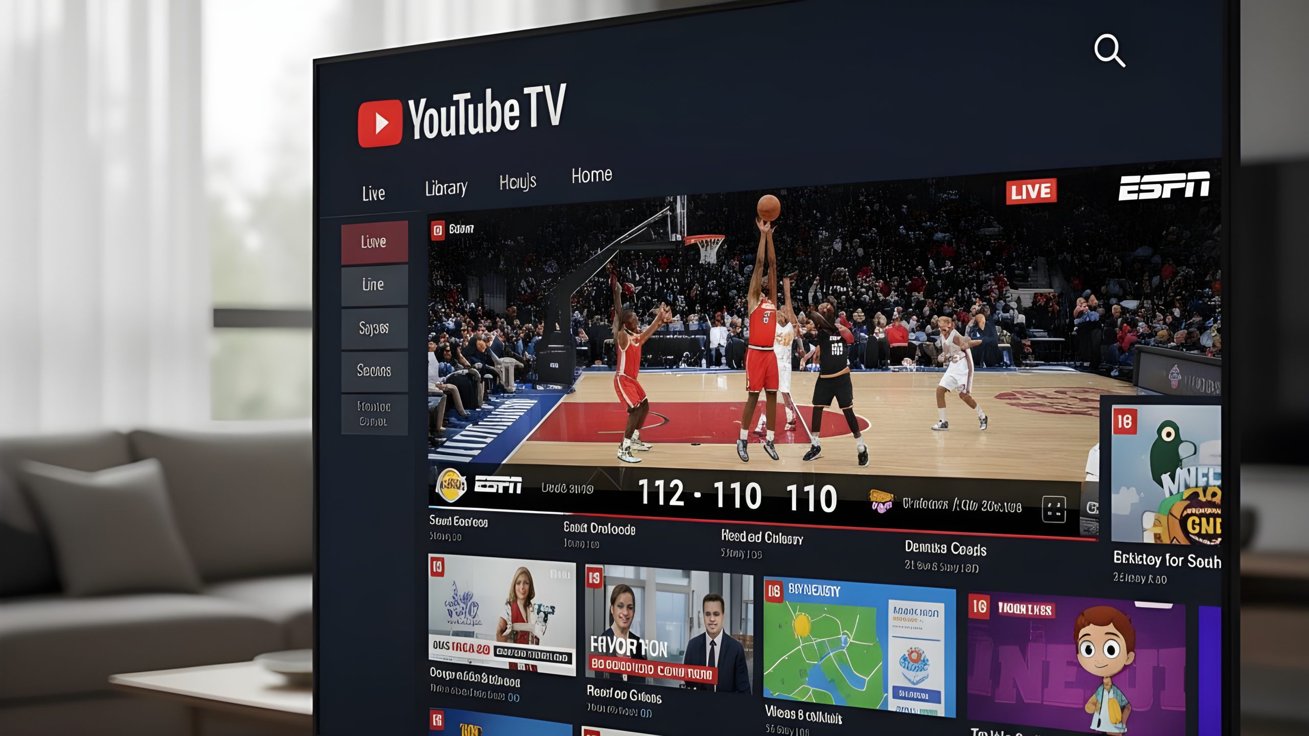 The 2025 YouTube TV interface has become smarter and more AI-driven. ESPN events are automatically categorized by sport, league, and live status.